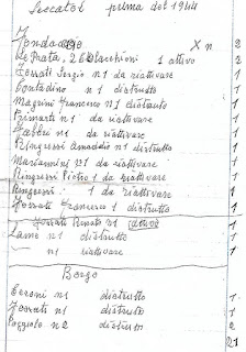 Nel documento redatto dal Sig. Francesco Rainetti al termine della Seconda guerra mondiale, è riportato un elenco dettagliato con i nomi dei proprietari di 46 seccatoi presenti a Castagno, suddiviso per “quartieri” e per località. E' anche annotato se in quel momento erano attivi, da riattivare, distrutti.